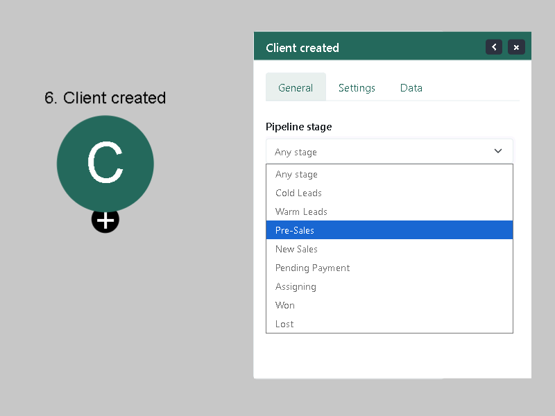 The “Client Created” trigger is a workflow initiator that activates automatically when a new client is added to the pipeline. This trigger serves as the starting point for your workflow, allowing you to set up automated processes or actions that should occur immediately after a client is created. By utilizing this trigger, you can streamline your client onboarding process and ensure consistent follow-up procedures for every new client in your system.