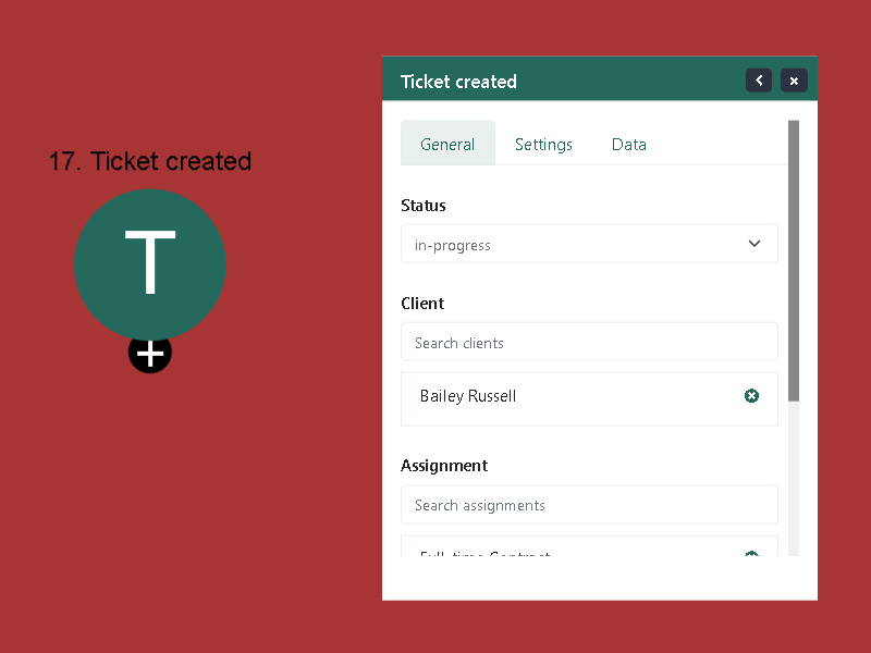 The “Ticket Created” trigger is a workflow initiator that activates when a client submits a new ticket or complaint with an attached assignment. This trigger serves as the starting point for your workflow, automatically detecting the creation of a new ticket and setting subsequent actions in motion. By utilizing this trigger, you can ensure prompt and efficient handling of client issues from the moment they are reported.